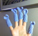 I brought my spinning wheel and met another spinster the first day out. She is from Eastern Washington and this was the fifth cruise she had taken with her husband and spinning wheel. It turned out that we are both NwRSA members and will both be at conference in June. We met every day of the cruise at one or another of the great view-spots on the ship to spin and whale-watch. I finished spinning and plying some wool/seacell and an ounce of angora. I also crocheted 8 bunny egg-cozies and 6 bunny finger puppets that I am going to list in my Etsy store as fundraisers for Rabbit Haven Shelter. We stopped in ports along the way and, I found yarn for my bunny puppets and a few stones to wrap at Mission Street Arts & Fibers in Ketchikan, hand dyed wool and a mystery batt at Skeins Fine Yarns in Juneau, and a packet of exotic fibers at Changing Threads in Skagway.