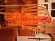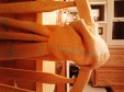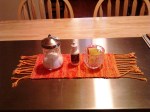 The warp is exhausted but I am ready for more! I made two scarves, a table mat and got a bunch of nice “ties” from the loom waste. Since Robin had me tie up the treadles 4, 3, 2, 1, I was able to discover two techniques, weft floats and inlay on my own. I later found a blog describing the same treadling pattern and calling it Moorman Technique. What is cool about it is that it leaves the sari silk on the top layer and the cotton makes a smooth backing, see pix of table mat below. Next up I will try a stole. The warp will be dark grey cotton with dark red boucle as weft.