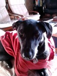 Apparently, the streets of Taiwan are considerably warmer than my Seattle living room because the poor girl is freezing. She’ll get on the couch and put her feet against me for warmth and I can feel how cold they are through my jeans. I downloaded a few patterns for sweaters, but didn’t want to invest the time knitting it if she wouldn’t tolerate wearing it. Fred Meyer obliged by having this cute hoody on sale for 50% off. So I brought it home and popped it on her. Rob was a good brother and didn’t laugh at her or anything rude like that. She got right down to the urgent business of chewing off the cord lock on the waist tie and then promptly curled up for a nap. I guess I am knitting dog sweaters this winter. Scott asked me if I would make Robbie one too but frankly I can’t think of any circumstances where he would be cold. He is the snow-dog, after all -you can see the proof in this post if you missed it last winter!